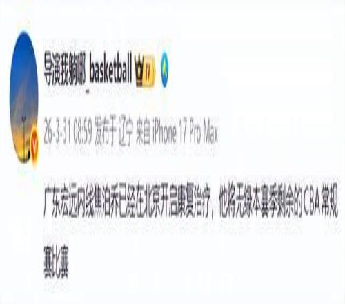 ±±¾©Ê±¼ä3ÔÂ31ÈÕÐÂÎÅ£¬¹ã¶«ÄÐÀºÄÚÏß½¹²´ÇÇ£¬ÒÑÕýʽȷÈÏÎÞÔµ±¾Èü¼¾Ê£ÓàËùÓнÇÖ𡪡ª²»ÊÇÒòÉË£¬¶øÊÇÒò¡°ÐIJ¡¡± ¡£
