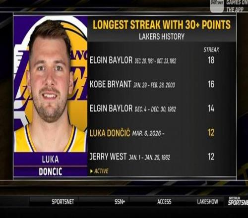第四 ,这是东契奇一连第13场得分30+ ,继续刷新小我私家生涯最长纪录 ,同时也是湖人队史第四长(凌驾杰里·韦斯特)。