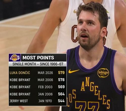 第六 ,东契奇单月579分逾越06赛季的科比成湖人队史单月得分王。