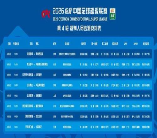 ¸Õ¸Õ £¬Öйú×ãЭÔÚ¹Ù·½Éç½»Õ˺ÅÐû²¼ÁË2026Èü¼¾Öг¬ÁªÈüµÚ4ÂÖ²ÃÅÐְԱѡÅɰ²Åűí¡£ÓÉÓÚ±¾ÂÖ²¢Ã»ÓÐǿǿ¶Ô»°µÄÒªº¦³¡´Î £¬Òò´ËÂíÄþ¡¢¸µÃ÷µÈ¶àÃû¹ú¼Ê¼¶²ÃÅоùȱϯ £¬½öÓÐ1Ãû¹ú¼Ê¼¶²ÃÅе£µ±Ö÷²ÃÅÐ £¬Ëû¾ÍÊÇÉòÒúºÀ¡£