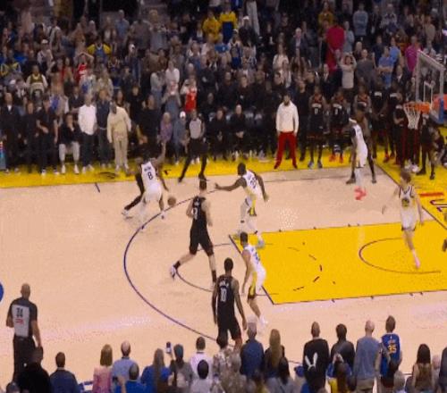 杜兰特持球吸引防守,将球传给申京,面临没有高度的勇士放篮打进上演准绝杀。