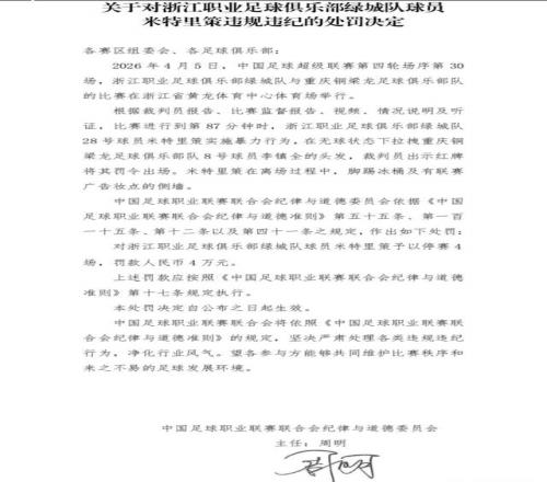 ÖØÇìÍ­ÁºÁú¿´À´ÕæµÄÒªÔØÈëÊ·²áÁË¡£Öг¬ÉÏÂÖµÄ×î´ó³åÍ»ºÍÕùÒé £¬ÀîÕòÈ«ºÍÃ×ÌØÀï²ßµÄÊÂÎñ»¹ÔÚ·¢½Í¡£×ãЭ²»µ«¶ÔÃ×ÌØÀï²ß¾ÙÐÐ4³¡×·¼Ó´¦·Ö £¬²¢ÇÒ¶ÔÖØÇìÍ­ÁºÁúÖúÀí½ÌÁ·¶ÅÓîîºÂî²ÃÅпª³öÁËÍ£Èü6³¡µÄÖØ°õ·£µ¥ £¬Ö®Ç°Ò²´«³öÀîÕòÈ«Èü³¡ÂîÈ˵ÄÐÐΪͬÑù»á±»×·¼Ó2³¡´¦·Ö¡£